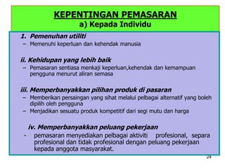 Oleh karena itu penting rasanya kita memahami pendapat. Hal ini karena keduanya merupakan target potensial yang harus dicapai oleh suatu perusahaan. Satu proses yang dikendalikan secara sistematik oleh usahawan untuk memuaskan kehendak dan keperluan pengguna di samping meningkatkan jualan syarikat.